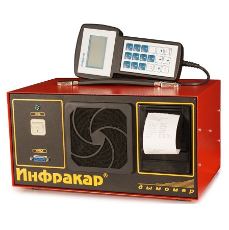 Переносной дымомер ИНФРАКАР-Д 1.01 предназначен для измерения дымности отработавших газов дизельных автомобильных двигателей. Оптическая база 0,43 м. + RS-232 + Выносной пульт ДУ. Внесен в Госреестре средств измерений РФ, Республики Беларусь, Казахстан и Молдова.