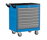 6 ящиков. Для хранения инструмента в ЕВРОЛОЖЕМЕНТАХ. Боковые панели с перфорацией (для установки аксессуаров). Цельносварная конструкция корпуса тележки. Центральный замок Euro-Lock. Шариковые направляющие полного выдвижения. Размеры (высота x ширина x глубина): 850 х 700 х 460 мм. Вес: 58,8 кг.