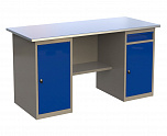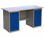 Двухтумбовый. Допустимая нагрузка на столешницу 1000 кг. Опорные элементы выполнены сварными из холоднокатаной стали. Для выполнения сборочных, ремонтных, слесарных, монтажных и других видов работ на производстве, в сервисных центрах, мастерских, гаражах, а также для обучения технологии в учебных заведениях. Комплектуется полкой-стенкой, расположенной под столешницей для удобного размещения габаритного инструмента и оснастки. Размеры верстака: 855x1596x696 мм. Вес: 123 кг. Поставляется в 4 комплектациях на выбор.