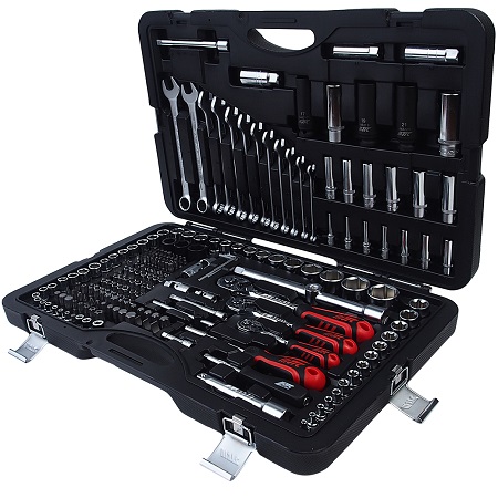 Набор инструментов 1/4" & 1/2" 6-гранный (в кейсе) 85 предметов. В наборе: головки торцевые 1/4", головки с насадкой HEX 1/4", головки с насадкой TORX 1/4", головки с шлицевой насадкой 1/4", головка с насадкой PH 1/4", насадки PZ 1/4", головки торцевые 1/2", свечная головка 1/2", насадка 5/16 HEX 1/2", насадки 5/16 TORX 1/2", насадки 5/16 PH 1/2" для ударной отвертки PH3, PH4, насадки 5/16 PZ 1/2", держатель бит: 1/2х5/16, трещотка 1/4 36 зубцов (резиновая ручка), удлинитель 1/4 50 и 100мм, кардан 1/4", вороток-отвертка 1/4", вороток 1/4" с плавающей головкой, гибкий вал 1/4", трещотка 1/2 36 зубцов, удлинитель 1/2" 125 и 250мм, кардан 1/2", переходник 3/8х1/2 с отверстием, ключи рожково-накидные.