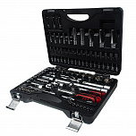 Набор инструментов в чемодане 1/4" & 3/8 & 1/2" 6-гранный (в кейсе) 216 предметов. В кейсе: 6-гранные головки 1/2", 1/4", 3/8", 6-гранные глубокие головки 1/2", 1/4", 3/8", головки TORX 1/2", 1/4", 3/8", головки 6-гранные ударные 1/2", головки 6-гранные глубокие ударные 1/2", головки 12-гранные свечные 3/8", трещотка реверсивная 1/2", 1/4", 3/8", удлинители 1/2", 1/4" 3/8", карданы 1/2", 3/8", вороток Т-образный с плавающей головкой, адаптер, отвертка-вороток 150 мм, держатель вставок 1/2", 1/4" 3/8", магнитный держатель для бит, головки-биты 1/4", биты 1/4", 3/8" , адаптер для бит 1/4", ключи комбинированные.