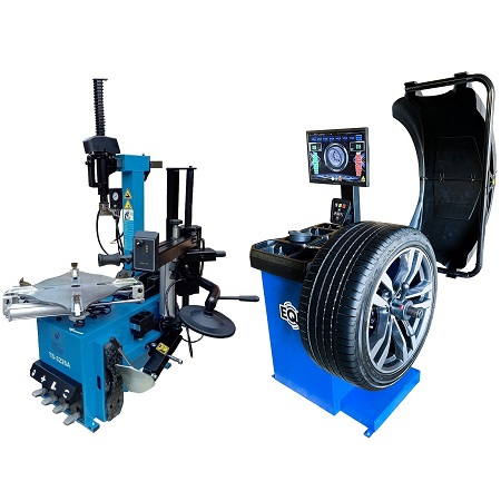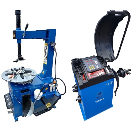 Комплект из полуавтоматического шиномонтажного стенда TS-21, для колёс 99% автопарка России. Для дисков: 11÷20”. В комплекте: пистолет для подкачки шин + монтажка + пластиковые накладки на зажимные кулачки + регулятор давления с влагоотделителем и манометром. + TS-550 Балансировочный станок (с лазером) Для дисков: 10÷24” (254-609 мм). В комплекте: кожух с автозапуском + клещи + кронциркуль + быстрозажимная гайка + набор конусов.