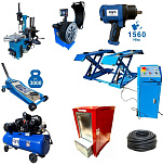 Комплект: шиномонтажный станок TS-21 для дисков: внешний 11÷20” + пистолет с манометром для подкачки шин + монтажка + пластиковые накладки на зажимные кулачки + регулятор давления с влагоотделителем и манометром. + TS-500 балансировочный станок с автозапуском, для колес легковых автомобилей и легких грузовиков, диаметр диска с резиной до 760 мм. размеры диска: ширина 3"–9” (76-228 мм), диаметр диска 10"–21” (254-533 мм). + кожух защитный + клещи + кронциркуль + быстрозажимная гайка + набор конусов + подкатной домкрат г/п 3,0т. 130-465мм. + ударный пневмогайковерт 1/2" крутящий момент 745Нм + шланг кислородный 9мм 20Атм. 10м