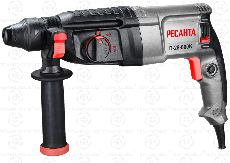 Перфоратор П-28-800К имеет все три режима работы: сверление, сверление с ударом и функция удара. Предусмотрена система защиты рабочего механизма от попадания пыли.