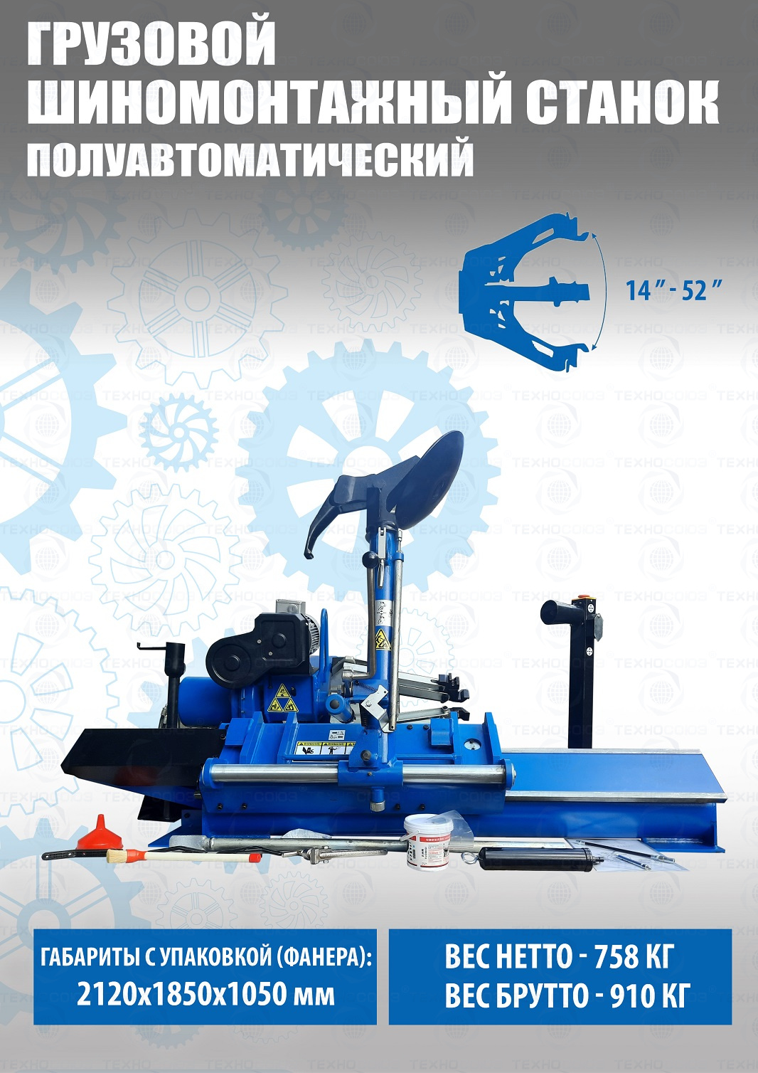 Комплект TS-52D Шиномонтажный стенд грузовой c удлинителями 14-52+TS-850 Балансировочный станок 380V