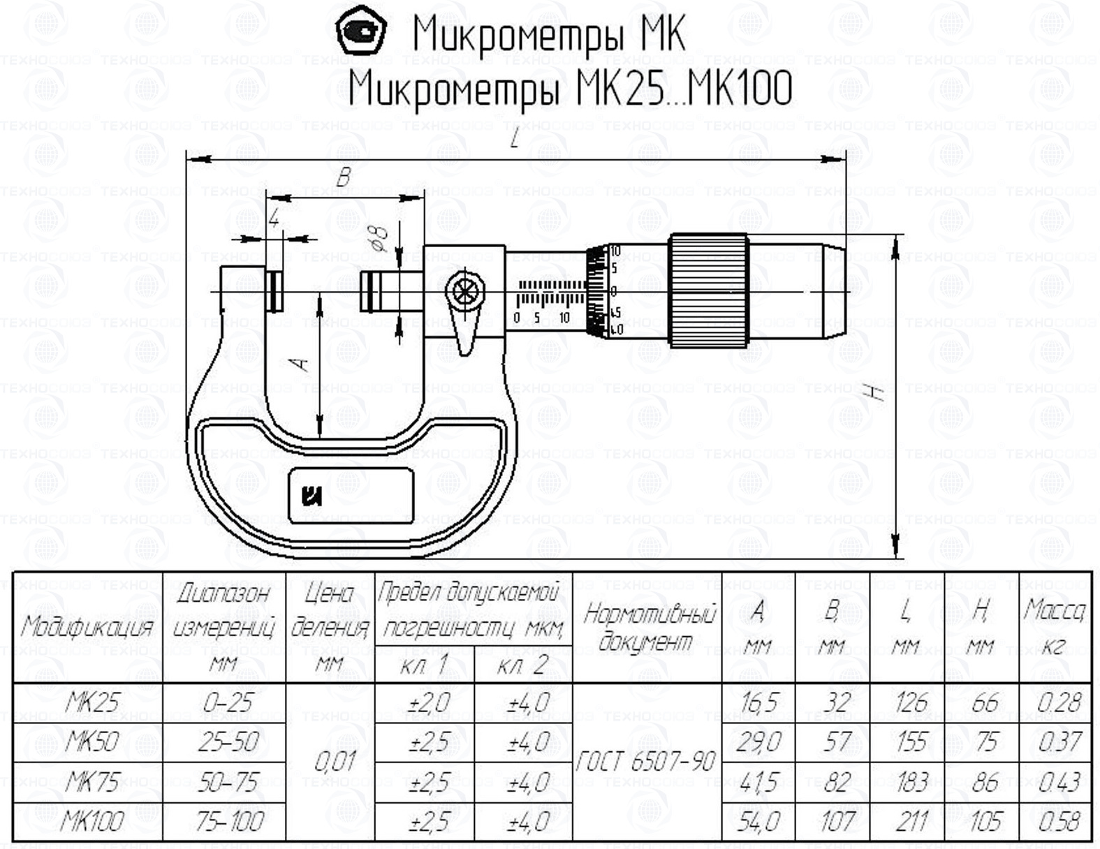 Цена деления 0,01 мм. Диапазон измерения от 75-100 мм. Для измерения наружных размеров изделий. Измерительные поверхности микрометра оснащены твердым сплавом. Микрометры укомплектованы одной установочной мерой. Класса точности 2. ГОСТ 6507-90. Поставляется в двух вариантах с поверкой и без поверки!