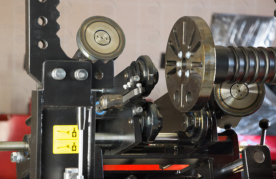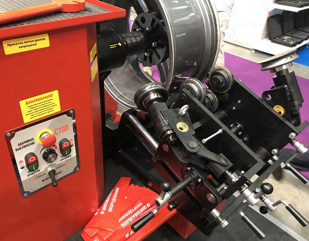 Основным преимуществом стенда является применение мощной гидравлики для перемещения и прижатия прокаточных роликов к диску, что позволяет станку справляться с ремонтом больших, до 17 дюймов в диаметре и до 3 мм толщиной стальных колёс легкогрузовых автомобилей и микроавтобусов.