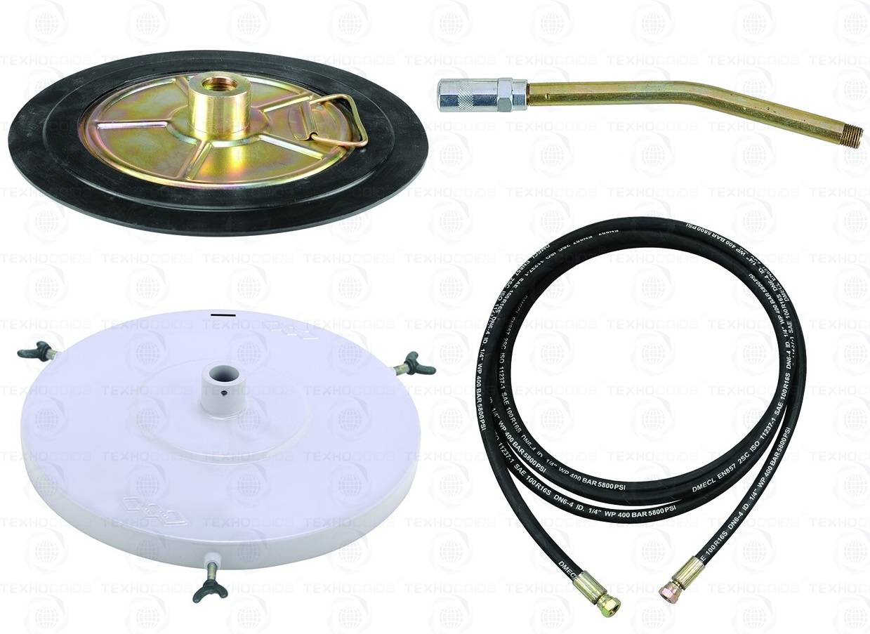 Нагнетатель смазки ручной (для густой и консистентной самзки). Комплект оснащен тележкой для бочек 20-60 кг., насос для смазки ручной производительностью 300 гр/мин, мембрана и крышка для солидолонагнетателя, шланг 4 м, раздаточный пистолет с наконечником. При давлении воздуха 6-8 Атм давление смазки 400 Атм максимально. Колёса: 2 прямых. Масса: 12 кг.