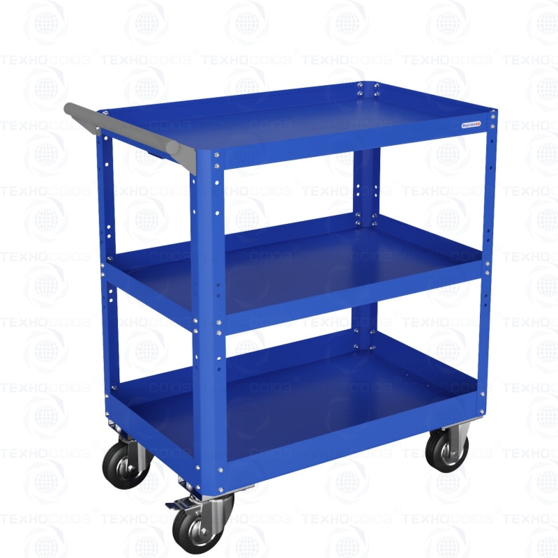 Размер 800х700х450мм. Общая равномерно-распределённая нагрузка на тележку - до 100кг. Корпус выполнен из листовой стали толщиной от 0,6 до 1,5мм., покрыт полимерной порошковой краской. Верхняя и средняя полка имеют высоту борта 40мм., нижняя полка имеет высоту борта 60мм