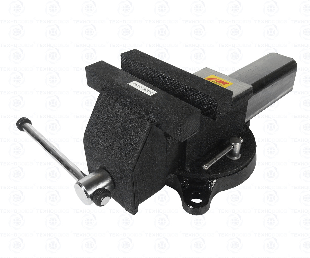 • Специальная конструкция с поворотным основанием позволяет регулировать и фиксировать тиски в нужном направлении.