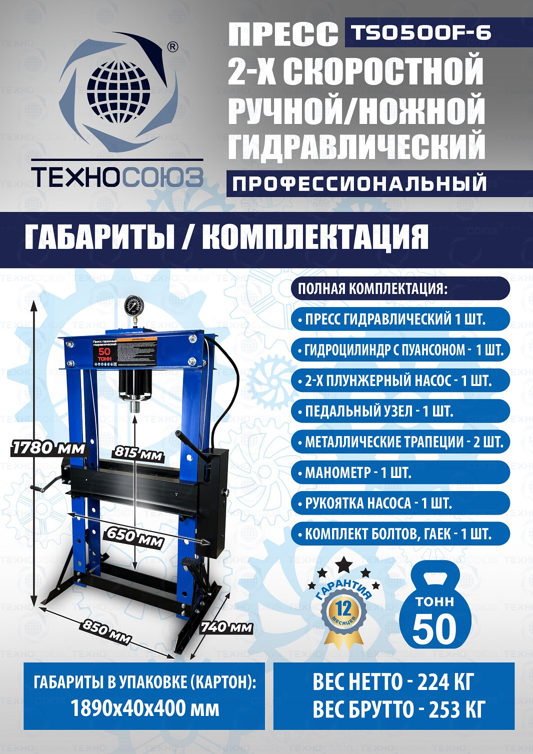 TS0500F-6 Пресс гидравлический ручной/ножной, 50 тонн