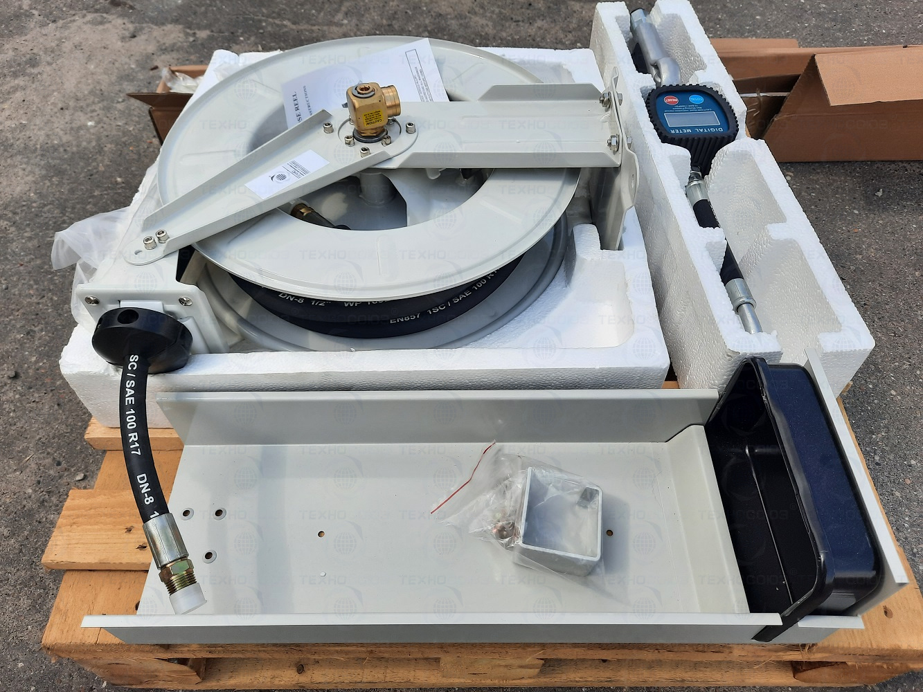 Катушка для масла, автоматическая, промышленная. Позволяет бесперебойно осуществлять перекачку масла. Длина шланга 10 метров, максимальное давление 135 Бар. Корпус из стальных пластин обеспечивает жесткость конструкции. Шариковые подшипники гарантируют долговечность. Размер катушки: 520x270x520 мм. масса: 23 кг.