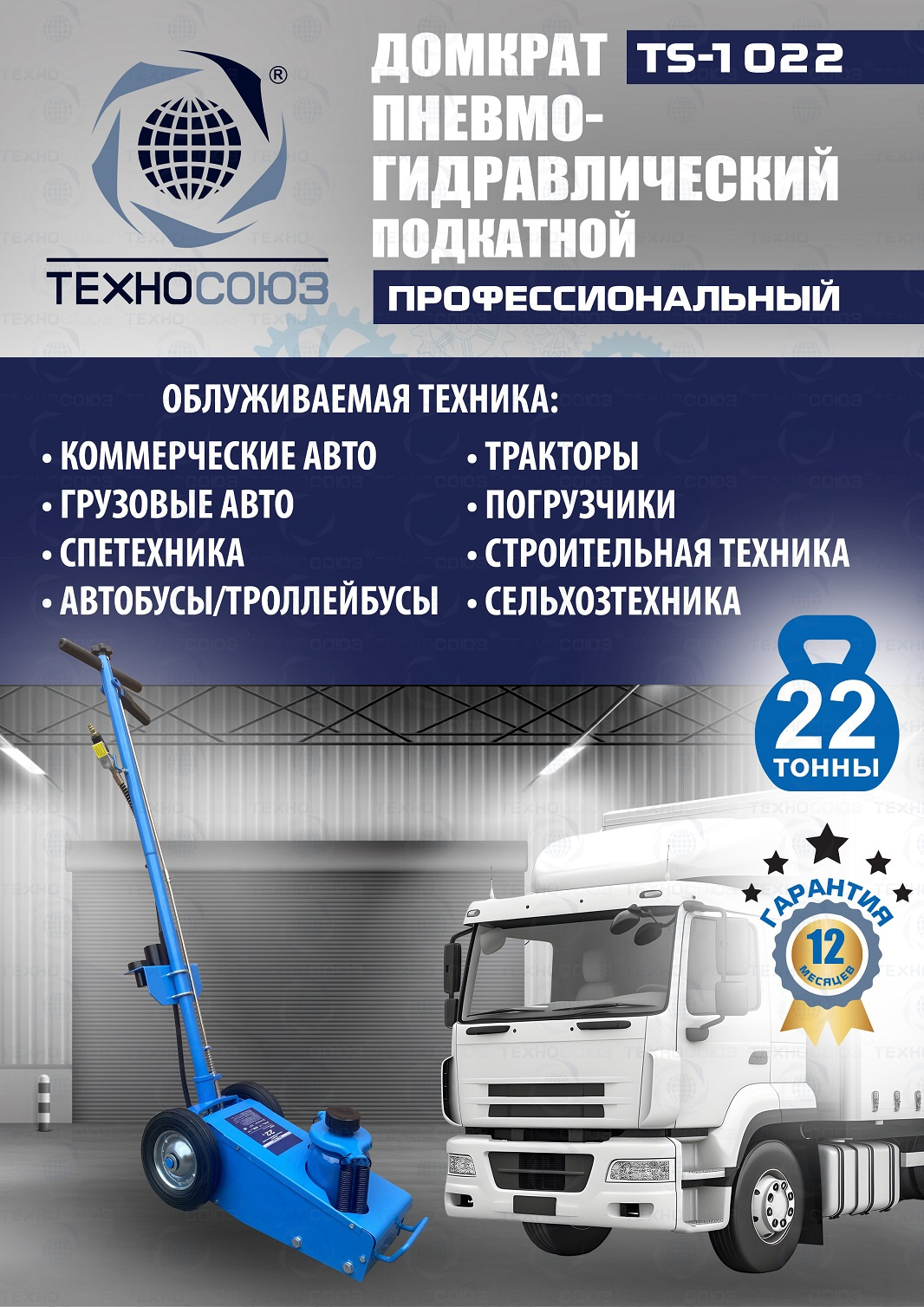Технические особенности TS-1022 пневмогидравлический подкатной грузовой домкрат: