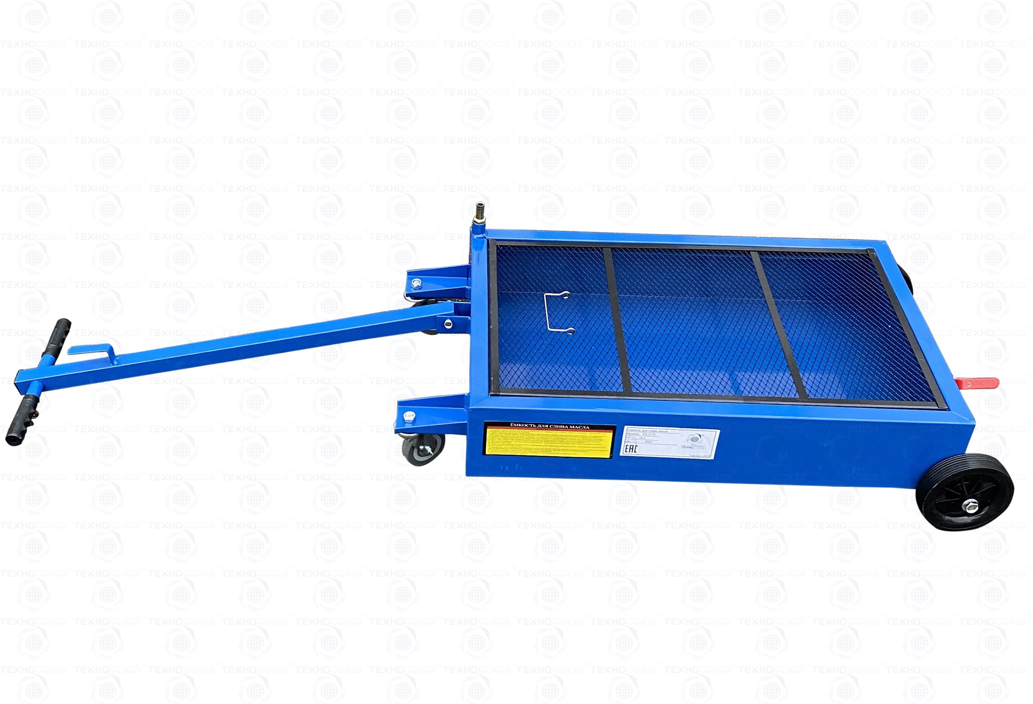 Подкатная. Ручная. Установка для слива отработанного масла 56л., антифризов из ДВС, КПП, мостов автомобилей, квадроциклов, грузовиков, тракторов с клиренсом от 190мм. Регулировка угла наклона рукояти 0˚÷150˚. Слив из установки в бочку самотеком. Сетка улавливает мелкие детали и предотвращает разбрызгивание.
