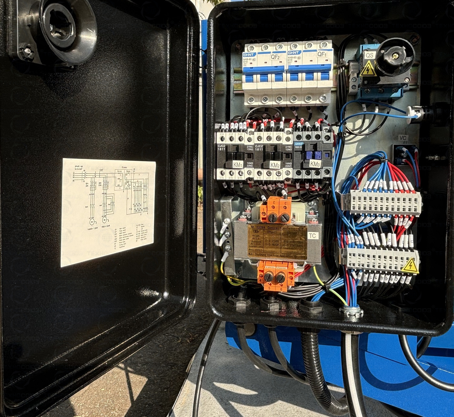 Электрические части грузового шиномонтажного станка выполнены в закрытом исполнении с заземлением.
