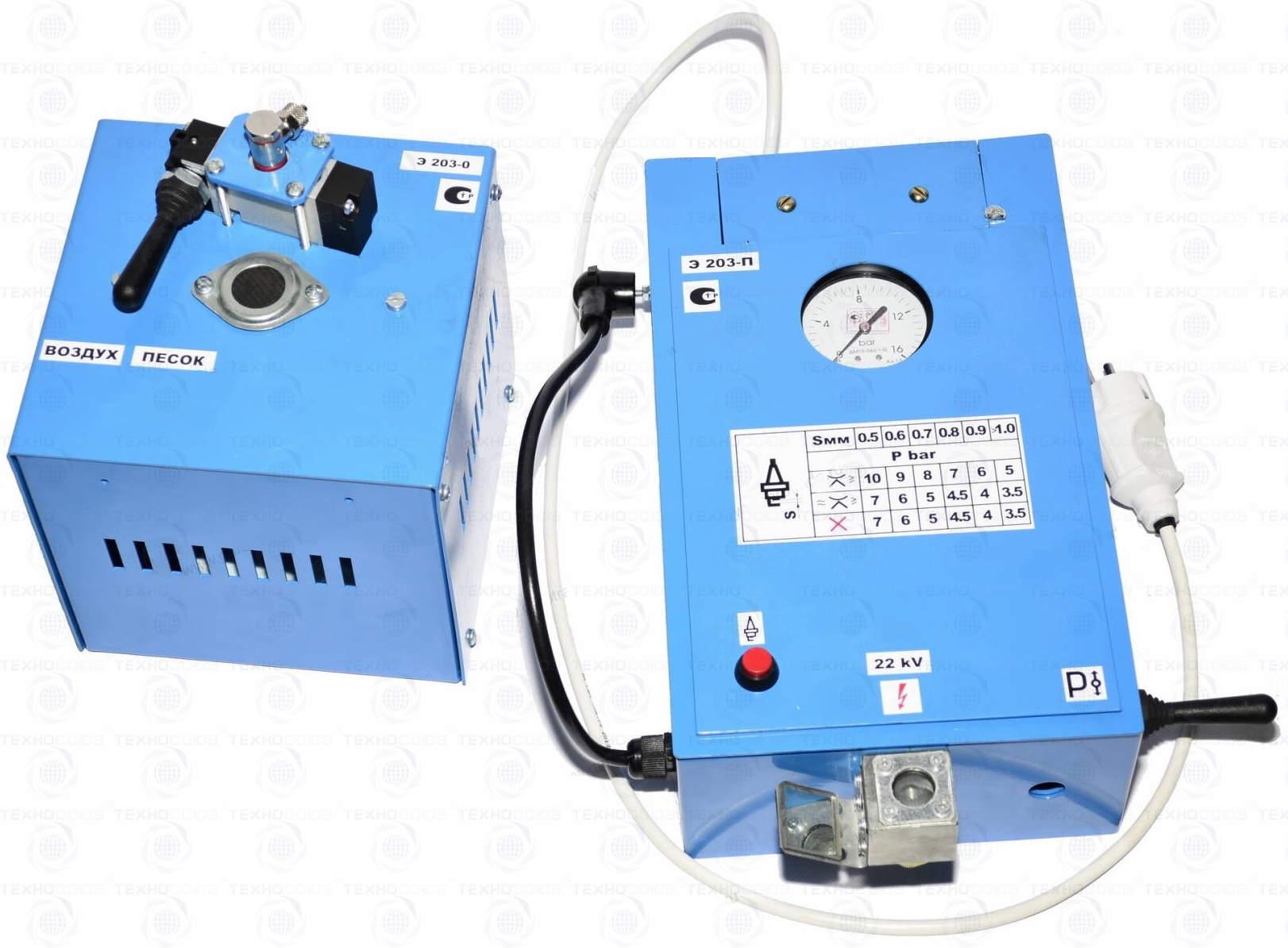 Э203-О - прибор для очистки свечей зажигания. Обеспечивает удаление нагара и других загрязнений на корпусе, тепловом конусе изолятора и электродах свечи при помощи пескоструйной очистки и продувки сжатым воздухом. Для очистки применяется формовочный кварцевый песок с размером зерна 0,14-0,18 мм. Подключается к сети сжатого воздуха.